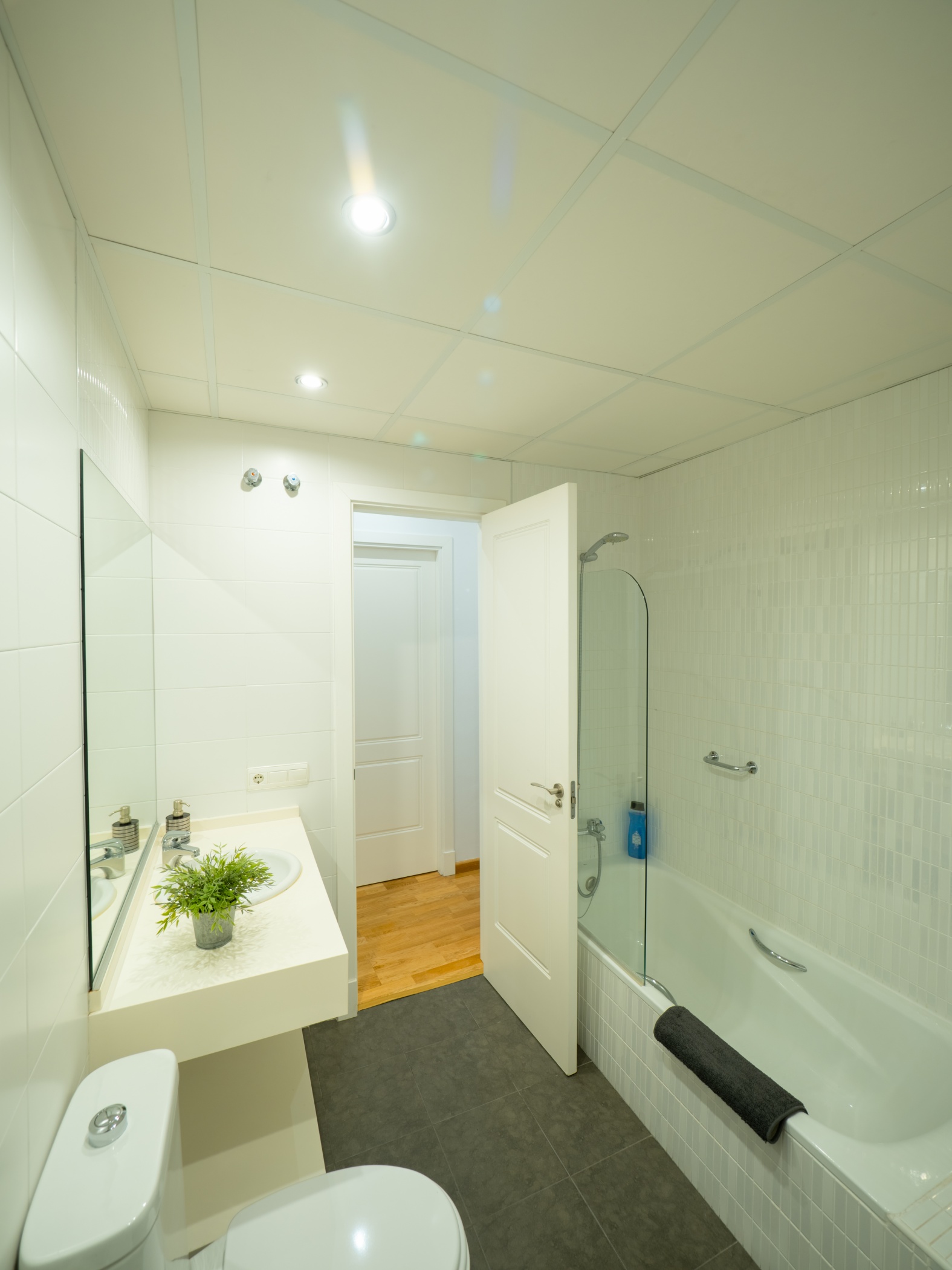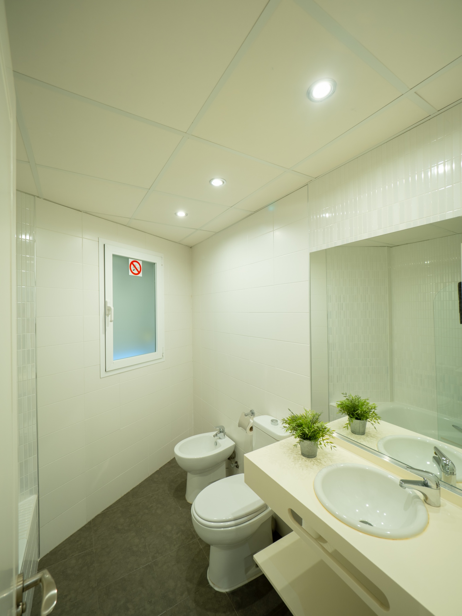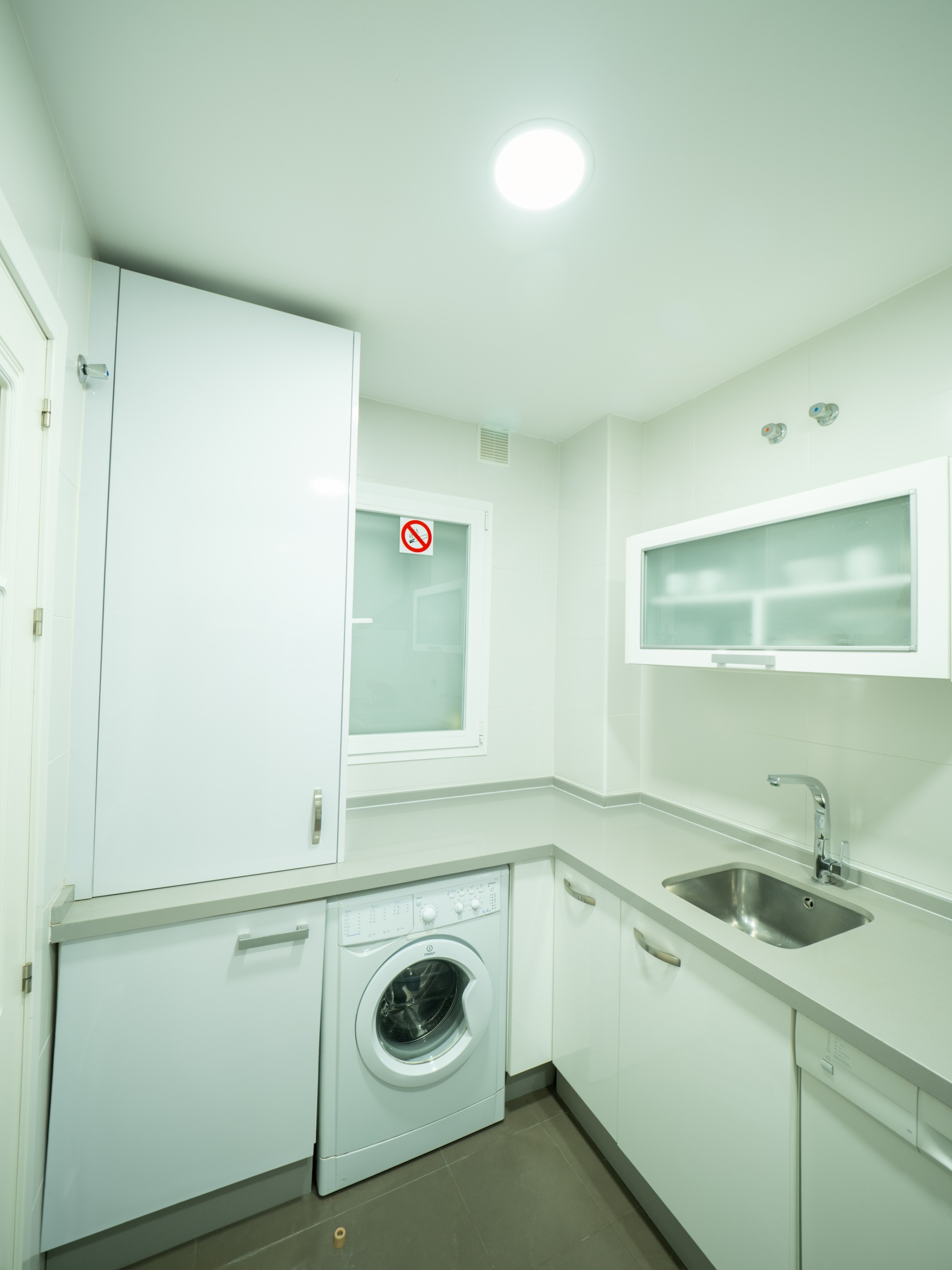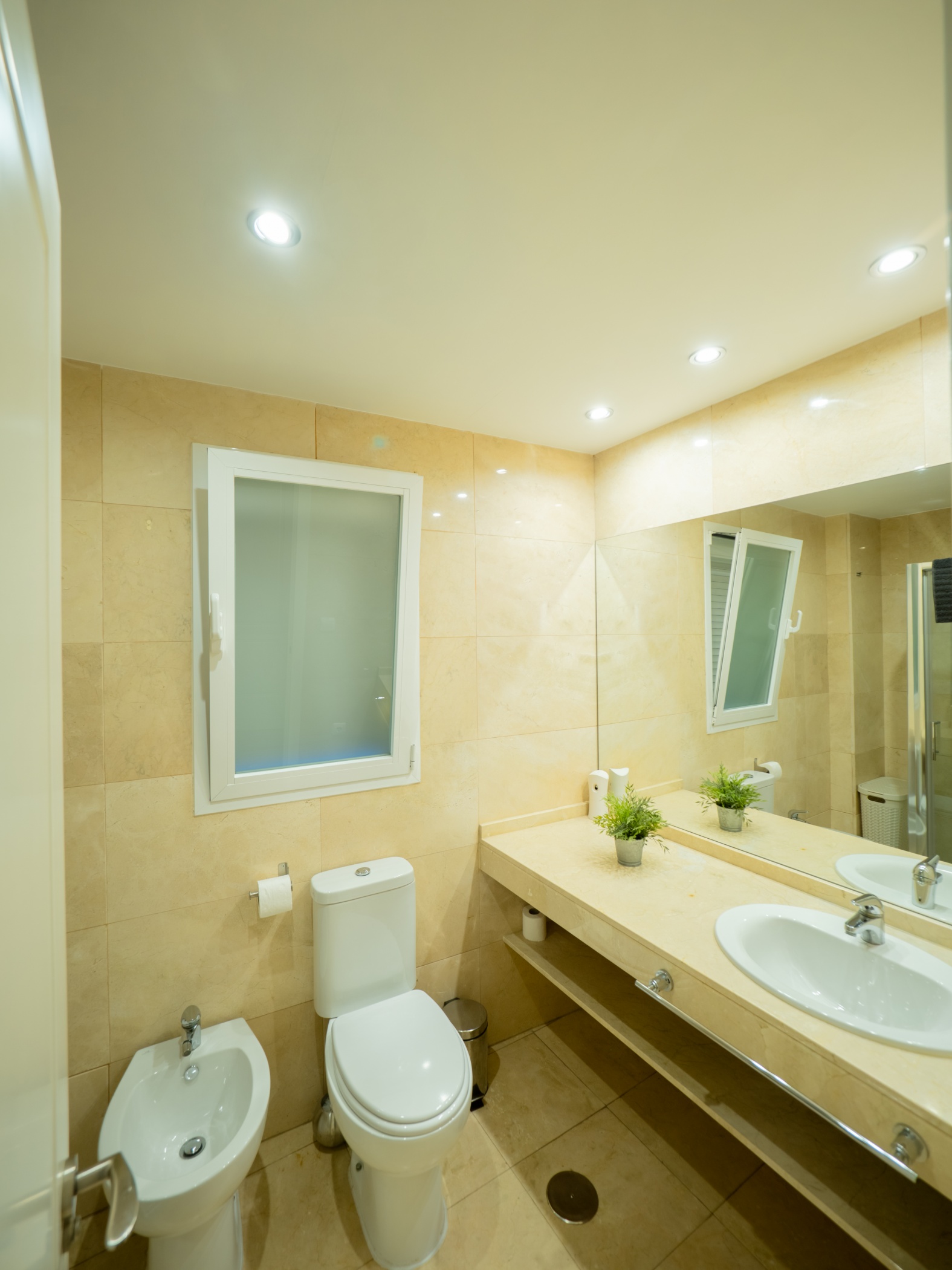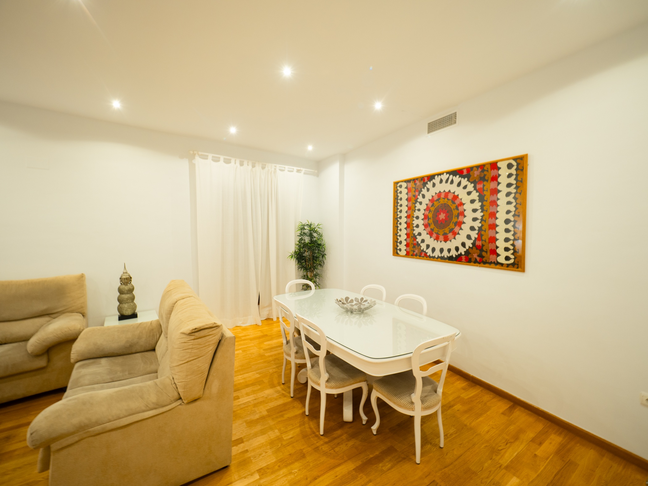 Living room, kitchen, full bathrooms (2). 3 bedrooms (2 90cm beds, 1 1.35cm bed and 1.50cm bed). Optional parking space (15€ per day)